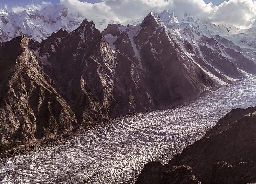 The heart of the trek starts near the serene Borith Lake. After a final check of our gear, we leave the comforts of the village behind. The most thrilling part? Crossing the Passu White Glacier. Under the guidance of our incredible local experts, we navigate the frozen waves and deep crevasses. It’s challenging, requiring focus and balance, but the sense of accomplishment when you step off the ice and onto solid ground is unmatched. From there, it’s a final, steep push from Luzdhar to the Patundas Meadows. When you arrive, the view simply steals your breath away. It’s a green sanctuary floating high above the ice—a reward that makes every grueling step worth it.